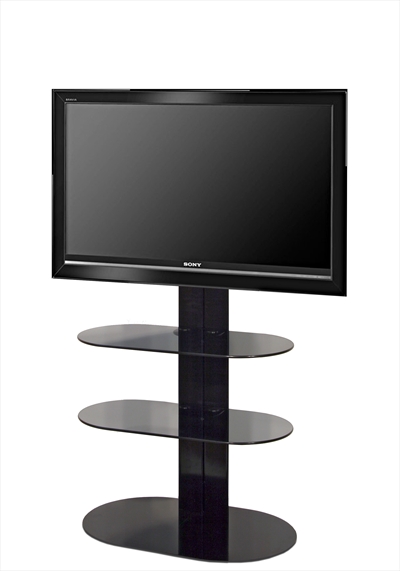 - N. 2 ripiani in cristallo temperato ovale, trasparente, spessore 8 mm, REGOLABILI IN ALTEZZA.